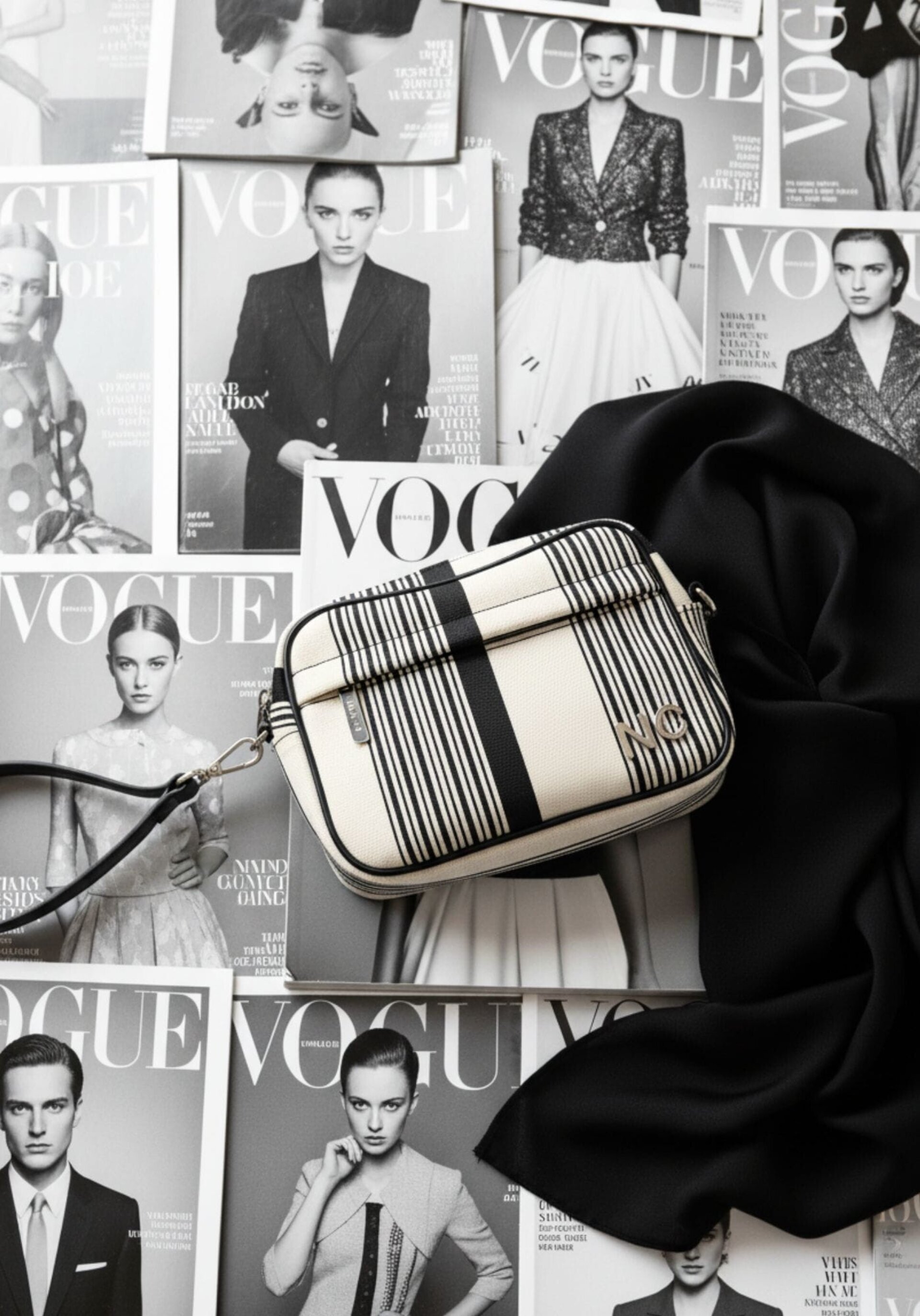 Bandolera tejido líneas B&W
