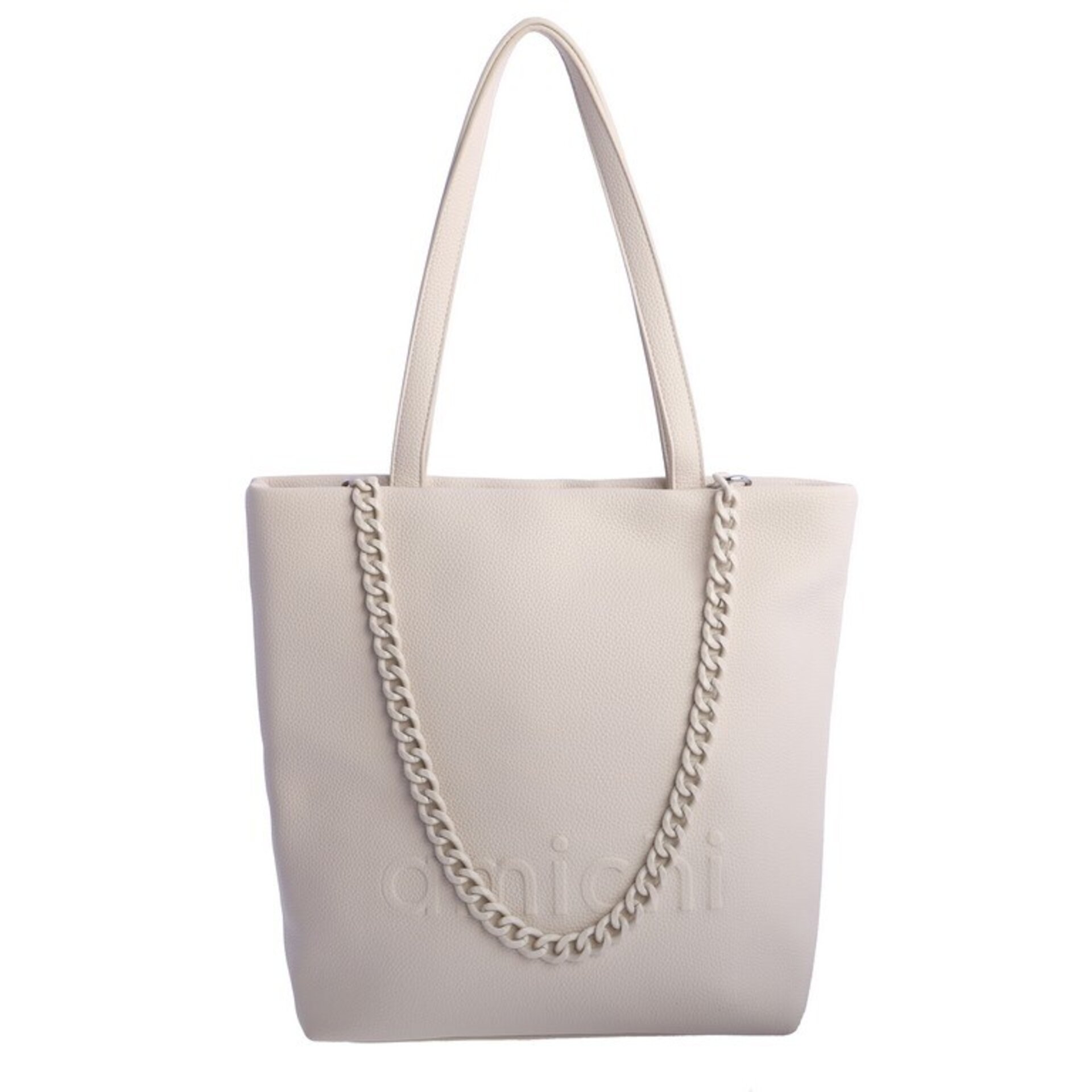 Bolso shopper color marfil con detalle de cadena
